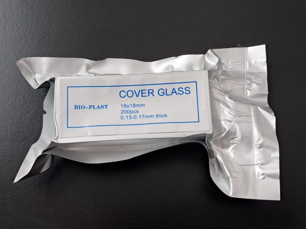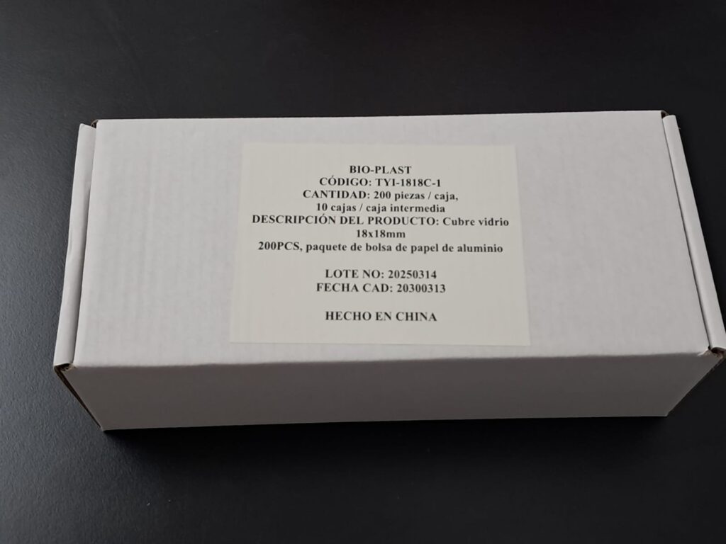 Cubreobjeto 18 x 18 Presentado en cajas con envoltorio de aluminio individual x 200 vidrios, envasados al vacío. Vidrio claro, limpio y desengrasado. Uso para protección de la muestra. Grosor 0,13 - 0,17mm.