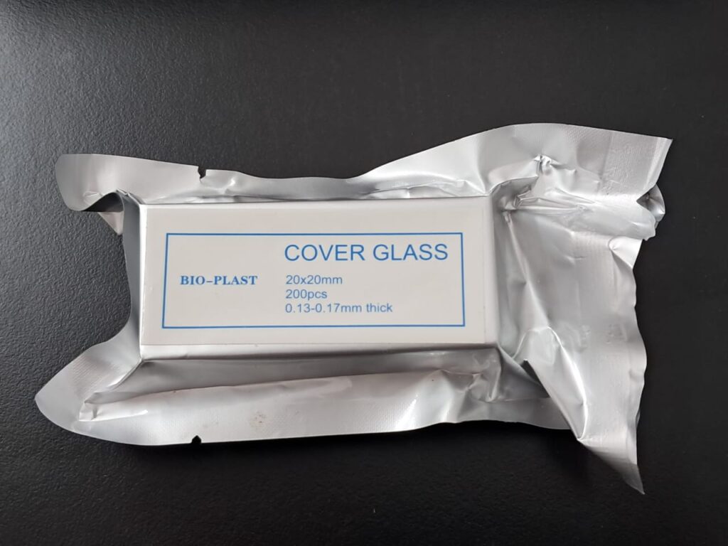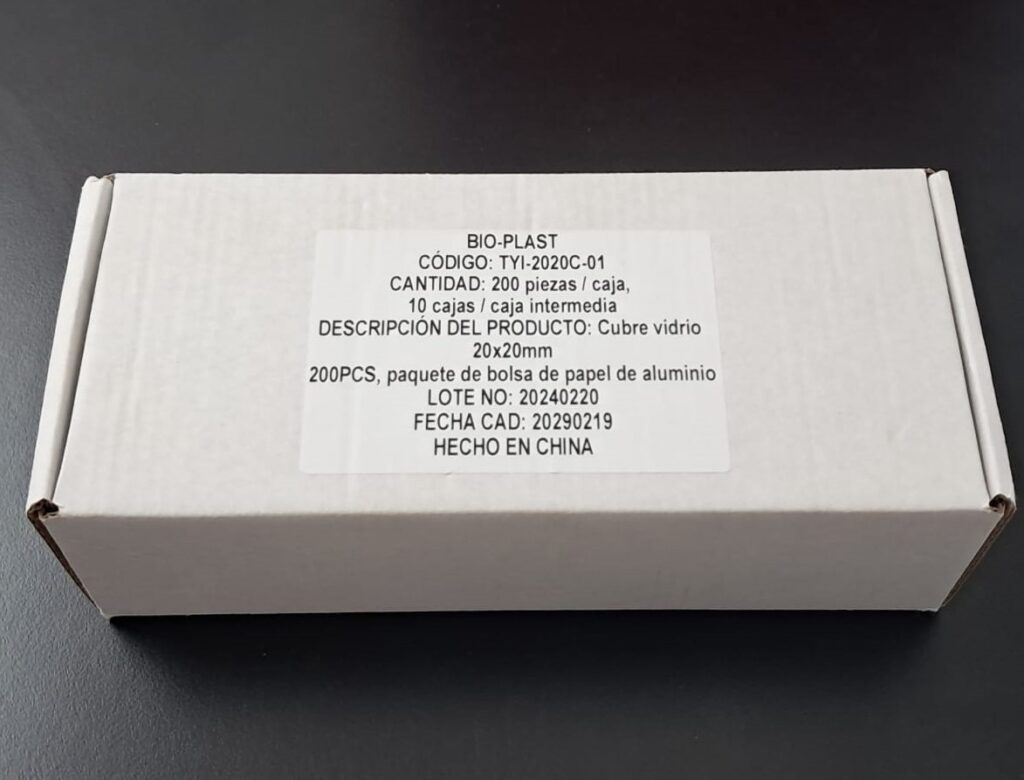 Cubreobjeto 20 x 20. CPresentado en cajas con envoltorio de aluminio individual x 200 vidrios, envasado al vacío. Vidrio claro, limpio y desengrasado. Uso para protección de la muestra. Grosor 0,13 - 0,17mm.