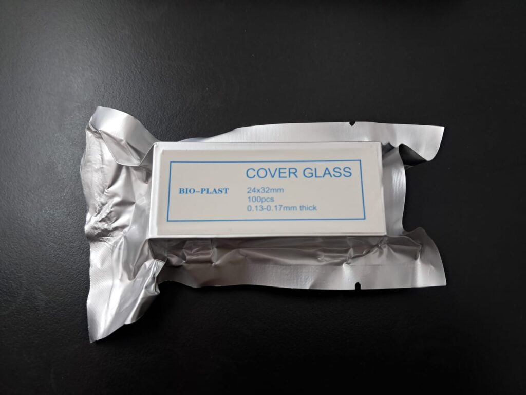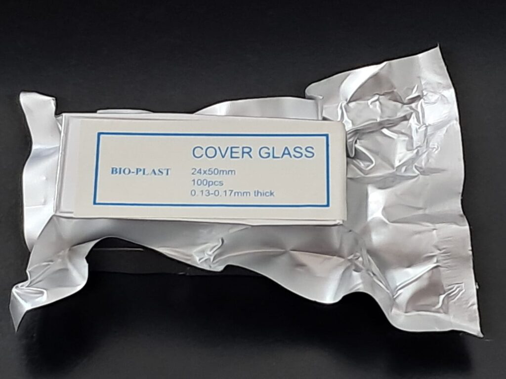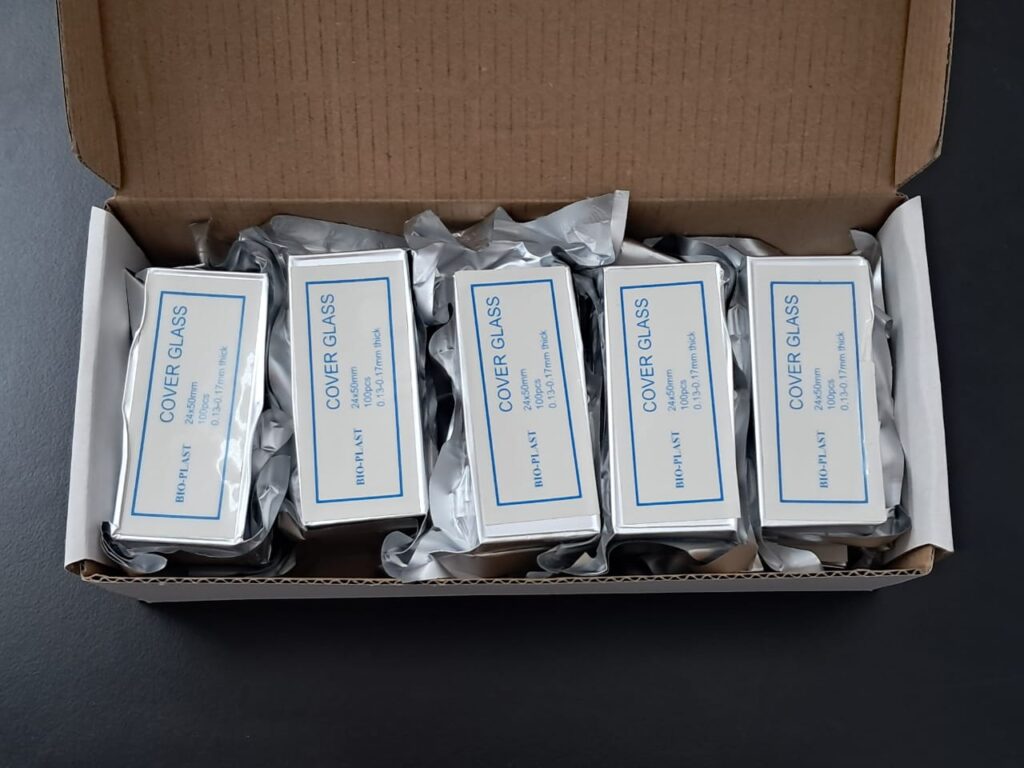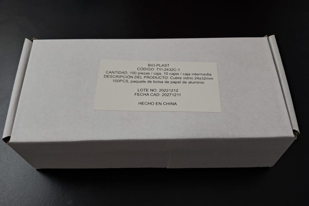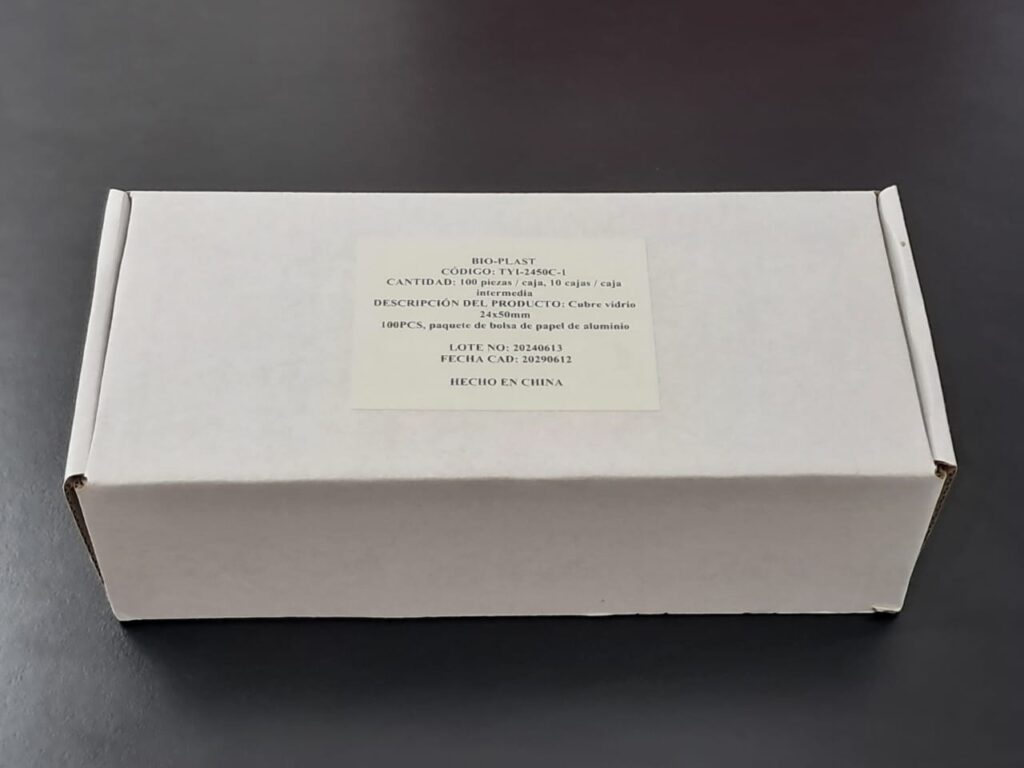 Cubreobjeto 24 x 50. Presentado en cajas con envoltorio de aluminio individual x 100 vidrios, envasado al vacío. Vidrio claro, limpio y desengrasado. Uso para protección de la muestra. Grosor 0,13 - 0,17mm.
