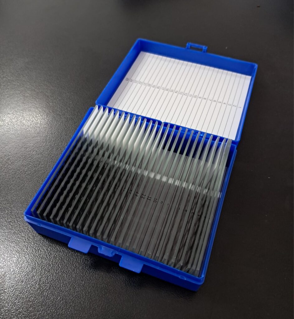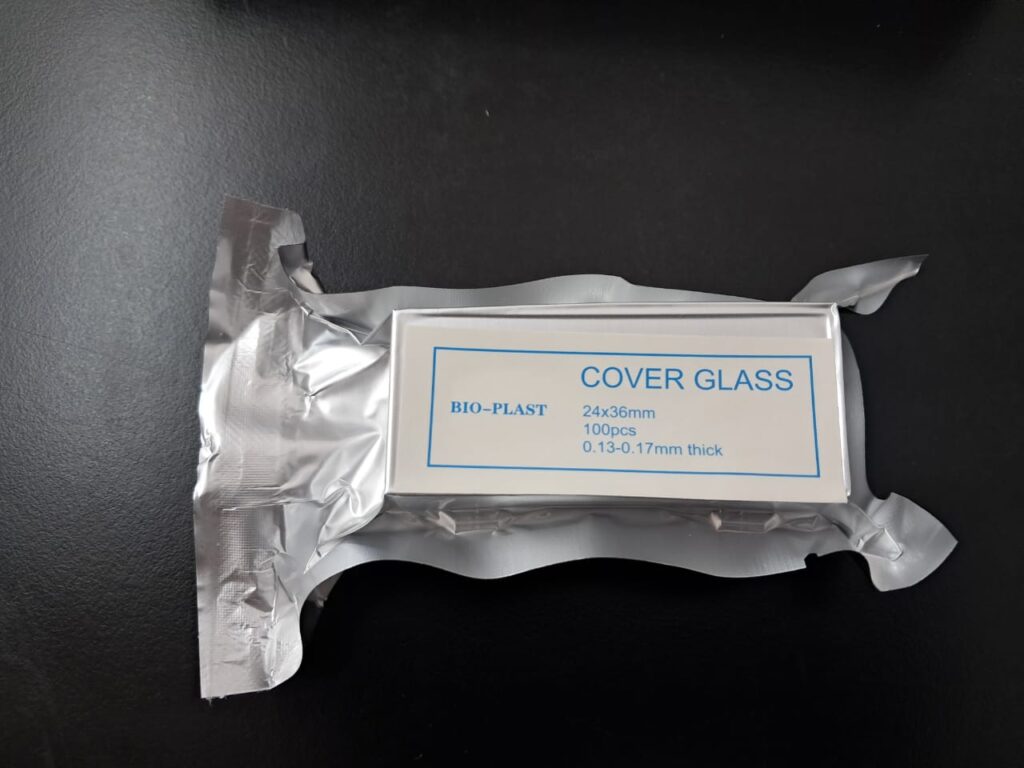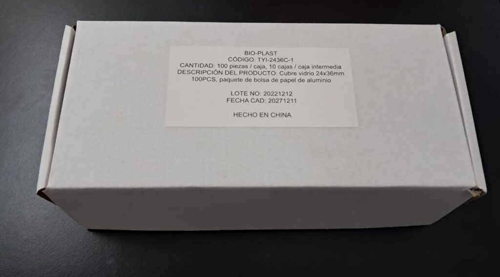 Cubreobjeto 24 x 36 Presentado en cajas con envoltorio de aluminio individual x 100 vidrios, envasado al vacío. Vidrio claro, limpio y desengrasado. Uso para protección de la muestra. Grosor 0,13 - 0,17mm.