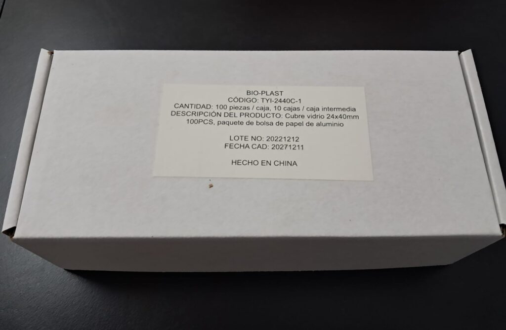 Cubreobjeto 24 x 40. Presentado en cajas con envoltorio de aluminio individual x 100 vidrios, envasado al vacío. Vidrio claro, limpio y desengrasado. Uso para protección de la muestra. Grosor 0,13 - 0,17mm.