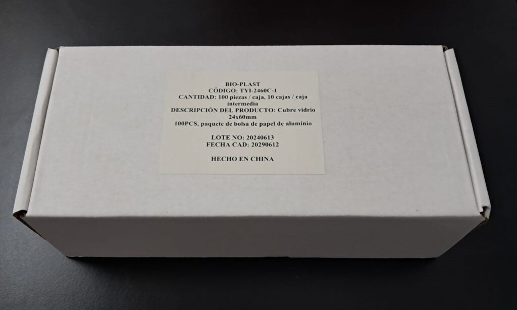 Cubreobjeto 24 x 60. Presentado en cajas con envoltorio de aluminio individual x 100 vidrios, envasado al vacío. Vidrio claro, limpio y desengrasado. Uso para protección de la muestra. Grosor 0,13 - 0,17mm.