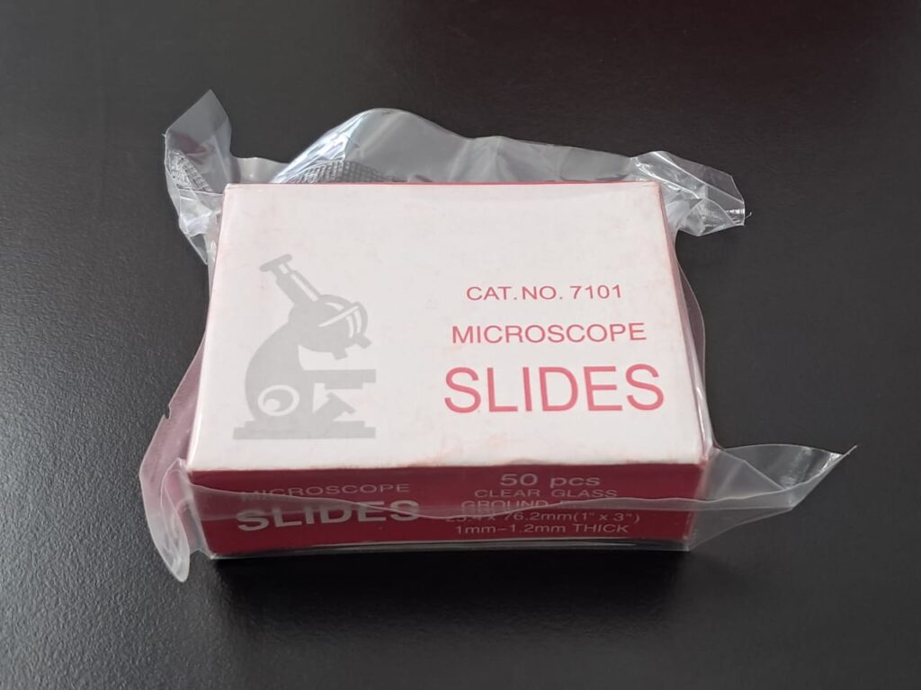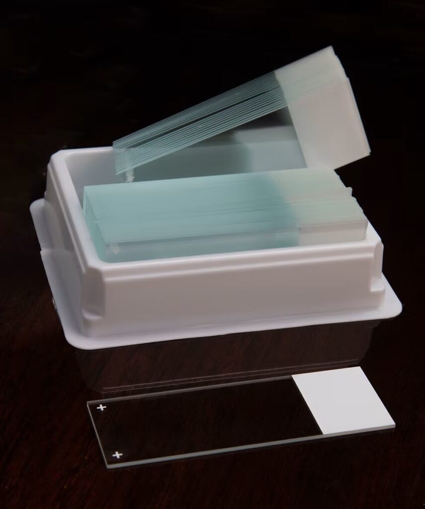 Portaobjetos de vidrio para microscopio FROSTED borde esmerilados con banda mate en cajas por 50. Vidrio claro ópticamente puro, superficies planas sin impurezas. Lavado y limpio listo para usar. A través de rígidos procedimientos de control de calidad.