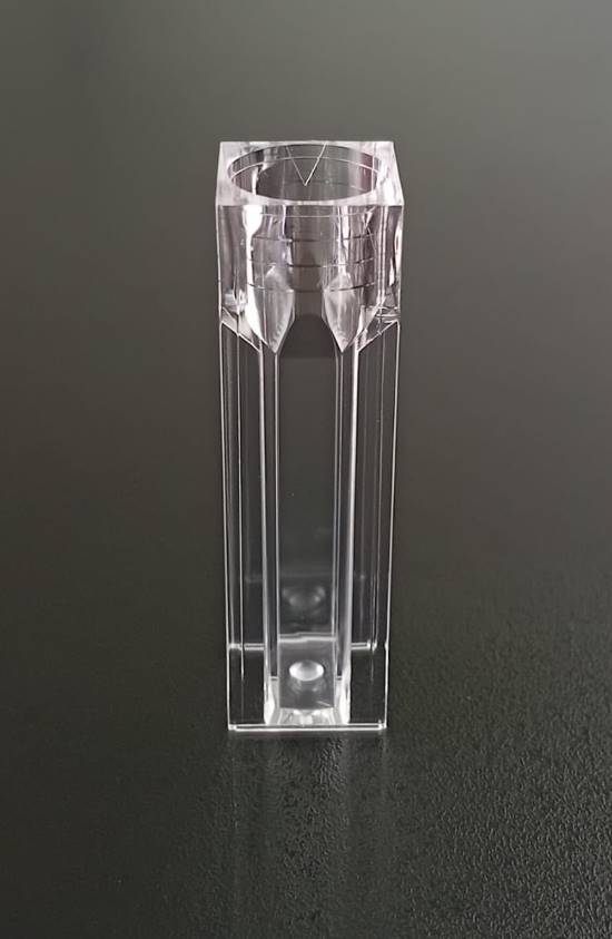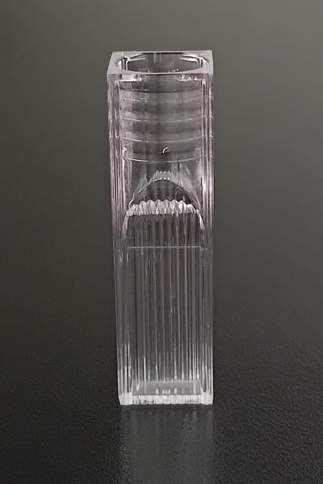 Cubetas para espectrofotometria en PS óptico 4,5 ml macro. La cubeta está hecha de material polimérico transparente y moldeado por inyección de poliestireno. El producto es suave y limpio. Es adecuado para varios sistemas de análisis maduros como coagulómetro y análisis bioquímico. Cubetas de un solo uso utilizables en la mayor parte de espectrofotómetros abiertos. Las variaciones en la absorción se encuentran en el umbral de ± 1%. Las cubetas se presentan en cajas de poliestireno expandido (100 unidades) con tapa