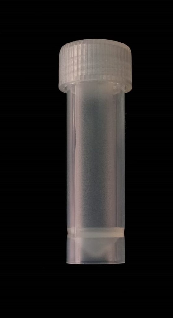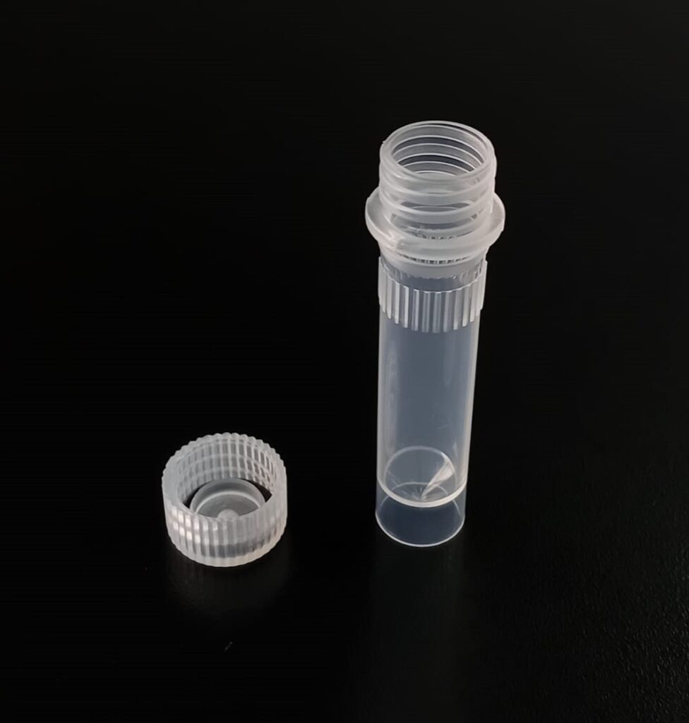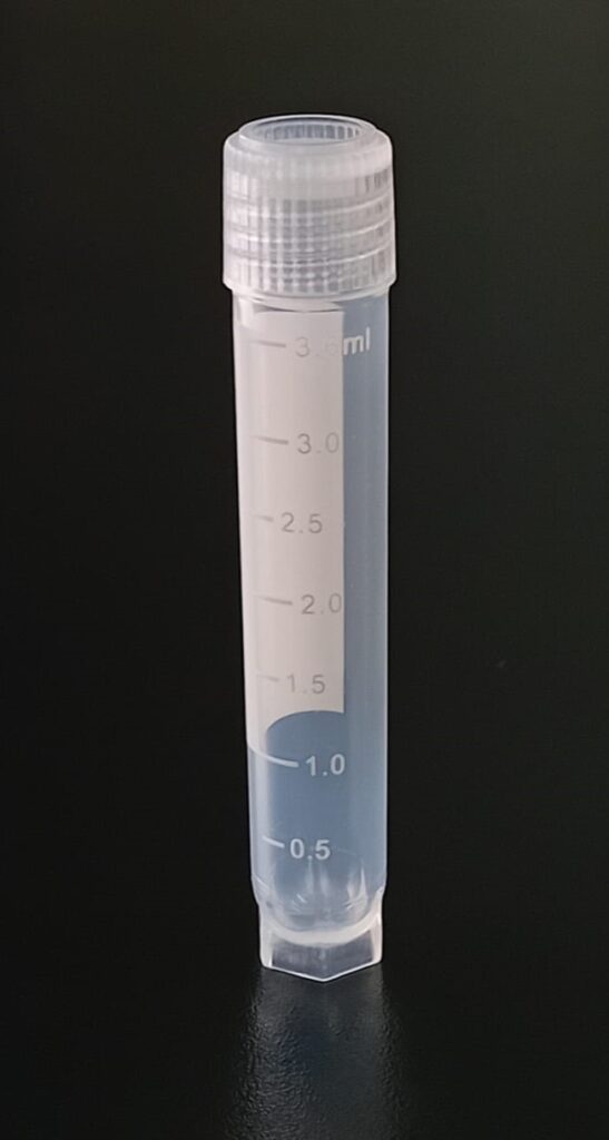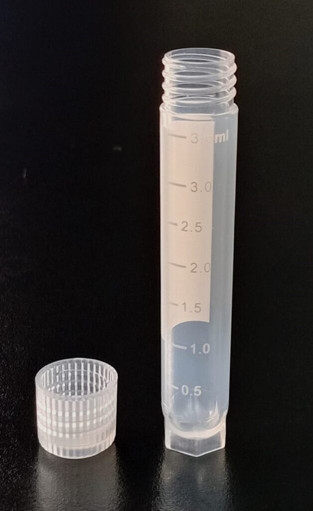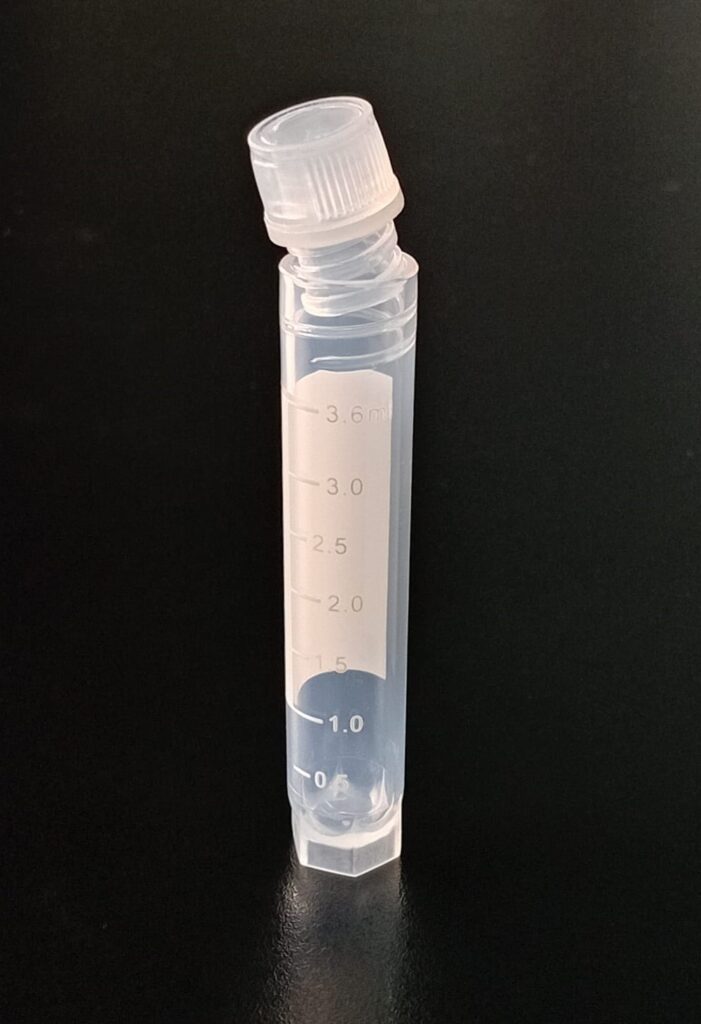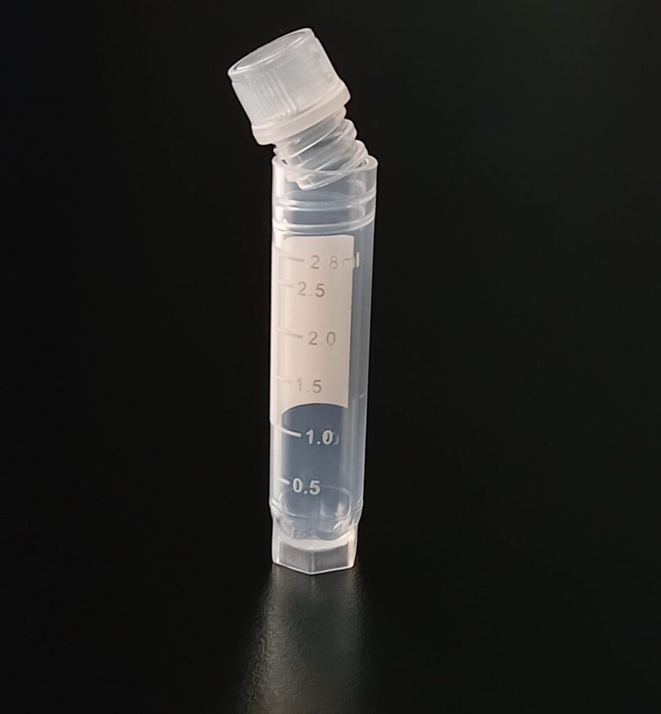 Criovial ROSCA EXTERNA de 3 ml con junta y faldón graduado, libre de DNAsa y RNAsa. Con graduación y banda mate para rotulado serigrafiadas. Tubos en polipropileno autoclavable a 121°C resistente a temperaturas hasta –196 ºC (sumergible en nitrógeno líquido solamente en estado gaseoso). El tapón en polipropileno incorpora una junta interna de silicona que asegura una hermeticidad total; y admite plaquetas de identificación. PRE Estériles x OE Libres de DNAsa, RNAsa y pirógenos