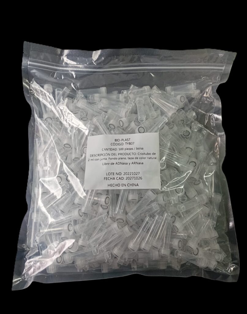 Código: 185TYB07FREE CH Caja cerrada: 10000 Venta mínima / Presentación: 500 INFORMACIÓN DETALLADA: Microtubo tapa a rosca resistentes a -196°C. de PP tapado 2 ml c/faldón , libre de DNAsa y RNAsa . Tubos fabricados en polipropileno autoclavable a 121°C transparente, . Producto ideal para almacenamiento de muestras durante largos periodos de tiempo. PRE Estériles x OE Libres de DNAsa, RNAsa y pirógenos SE ENTREGAN TUBOS Y TAPAS EN BOLSAS SEPARADAS CON CIERRE ZIP-LOCK. Contenido bolsa: 500 unidades Read More