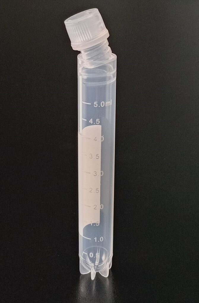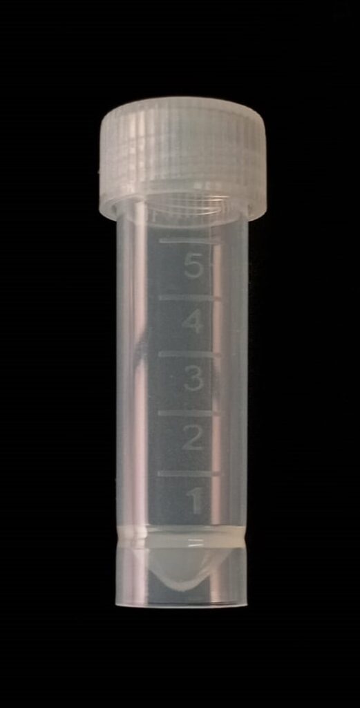 Criovial ROSCA EXTERNA de 5 ml con junta y faldón graduado, libre de DNAsa y RNAsa. Con graduación y banda mate para rotulado serigrafiadas. Tubos en polipropileno autoclavable a 121°C resistente a temperaturas hasta –196 ºC (sumergible en nitrógeno líquido solamente en estado gaseoso). El tapón en polipropileno incorpora una junta interna de silicona que asegura una hermeticidad total; y admite plaquetas de identificación. PRE Estériles x OE Libres de DNAsa, RNAsa y pirógenos