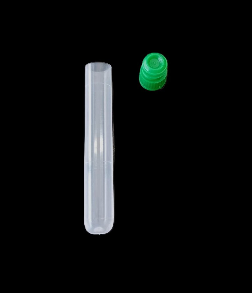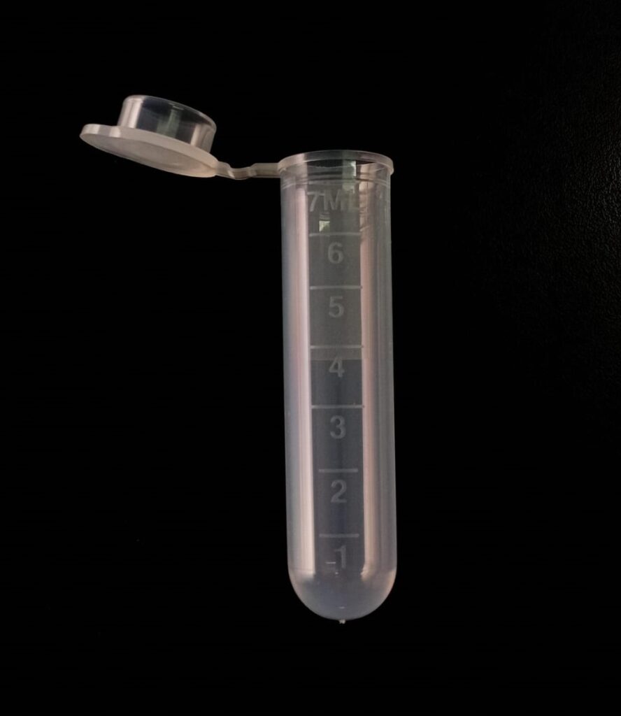 Microtubo de polipropileno autoclavable 7 ml fondo redondo, graduado con banda mate y tapa plana unida al tubo. Resistentes de -80°C a 121°C