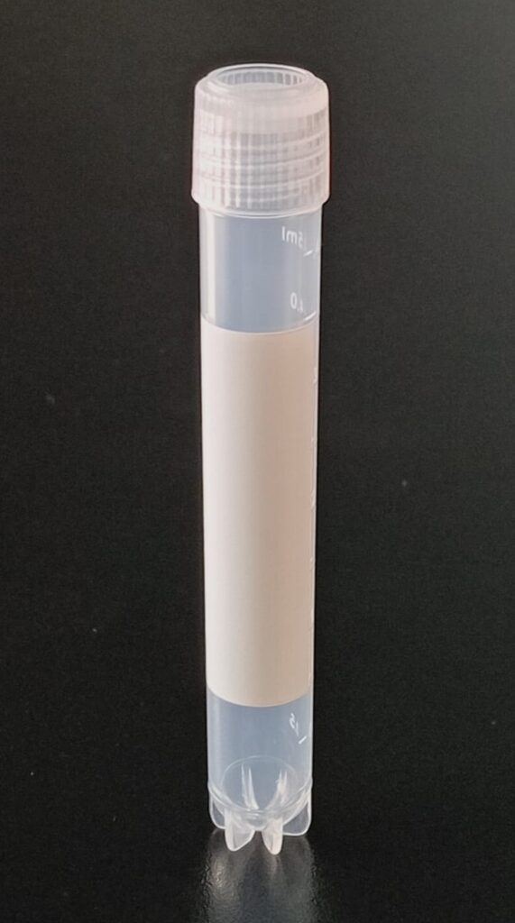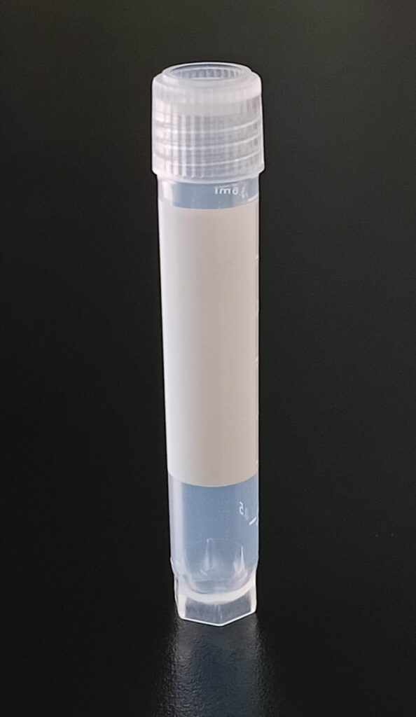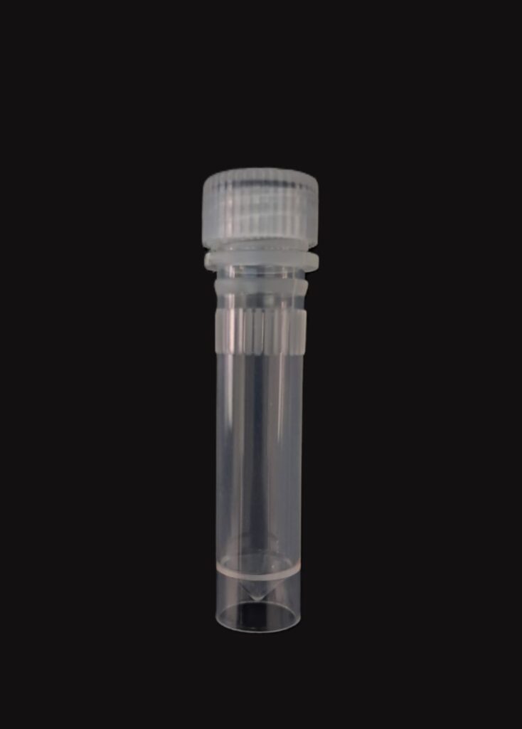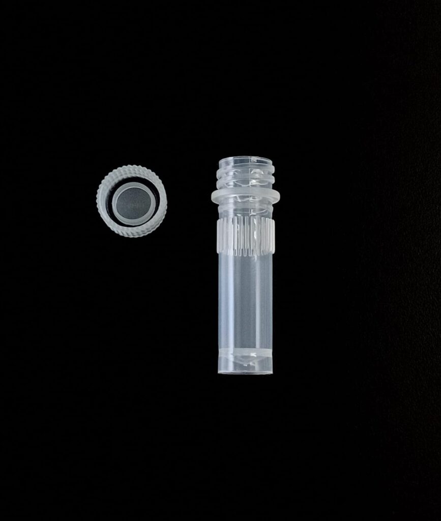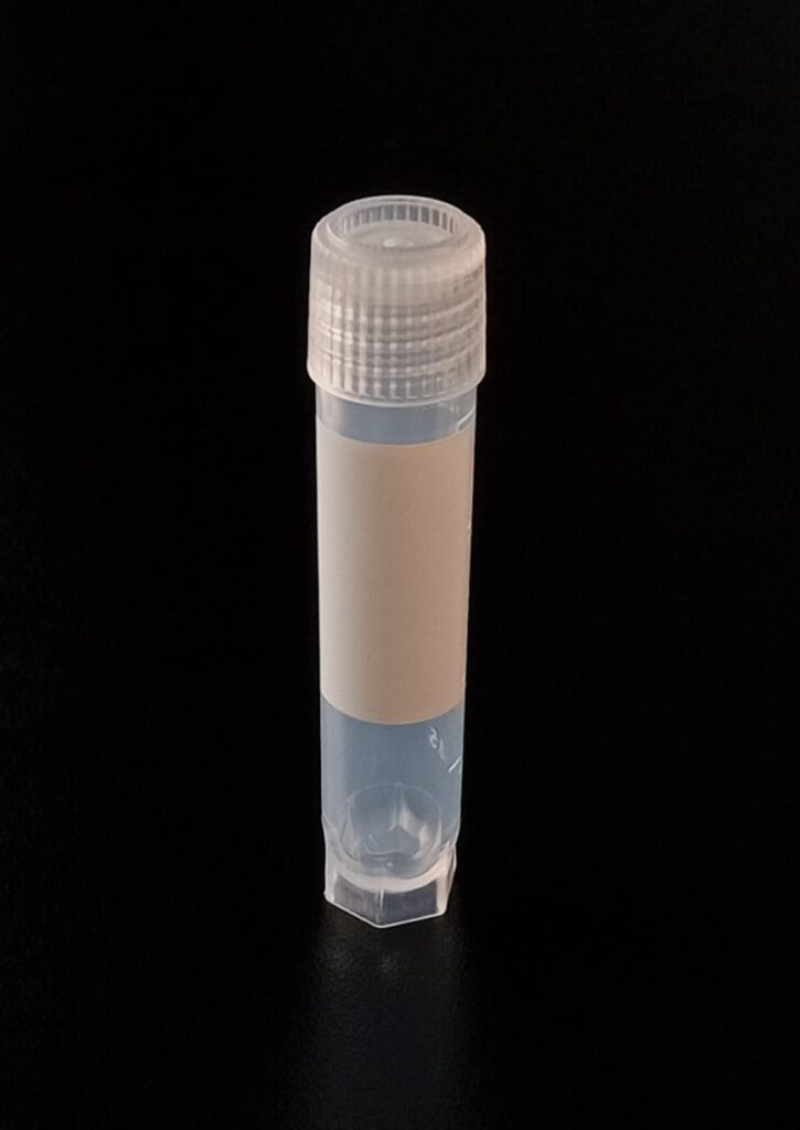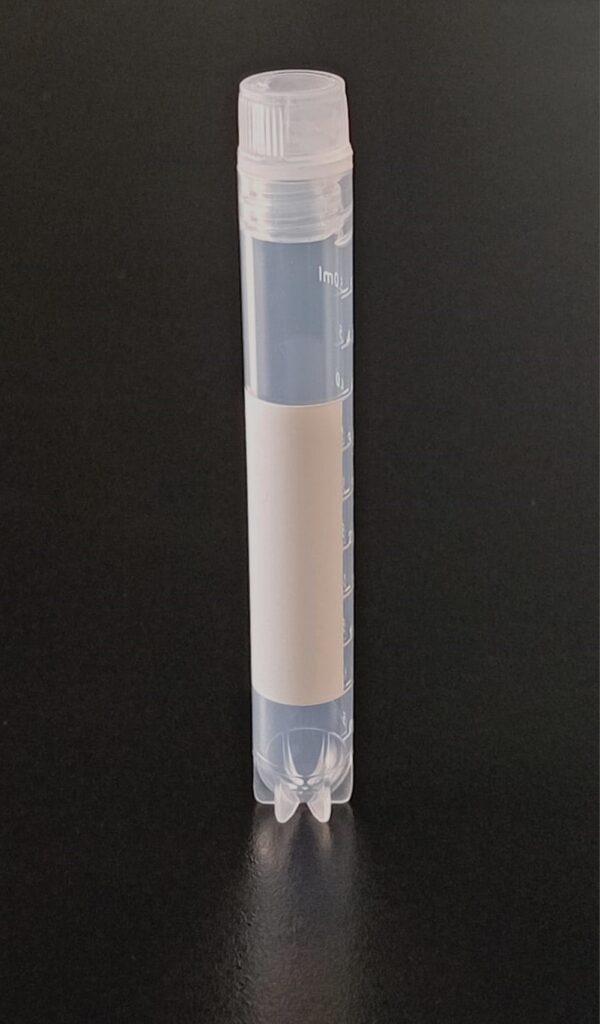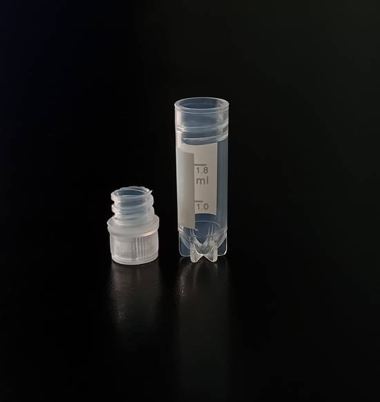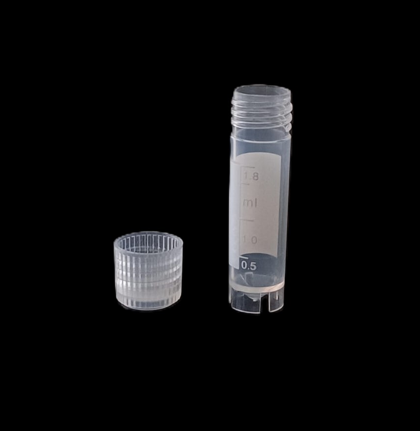 Criovial ROSCA EXTERNA de 2 ml con junta y faldón graduado a 1.8 ml y banda mate para rotulado serigrafiadas. Tubos en polipropileno autoclavable a 121° C resistente a temperaturas hasta -196° C . El tapon en polipropileno incorpora una junta interna de silicona que asegura una hermeticidad total; y admite plaquetas de identificación. PRE Estériles x OE Libres de DNAsa, RNAsa y pirógenos