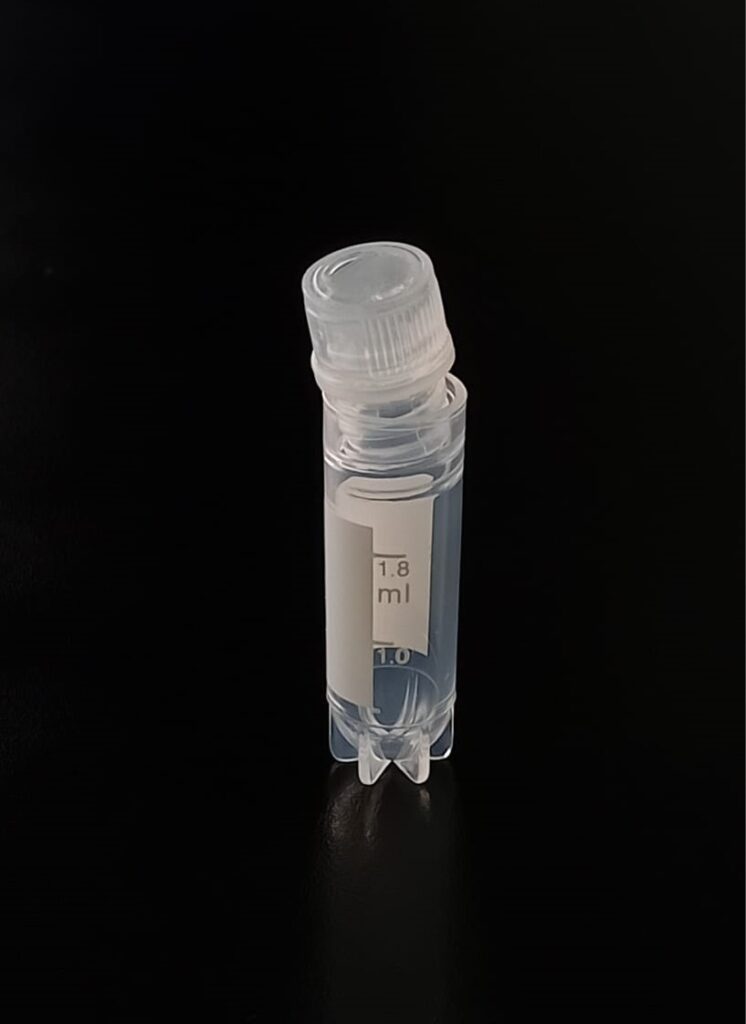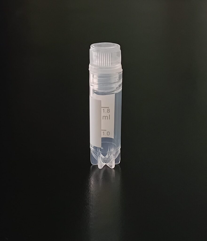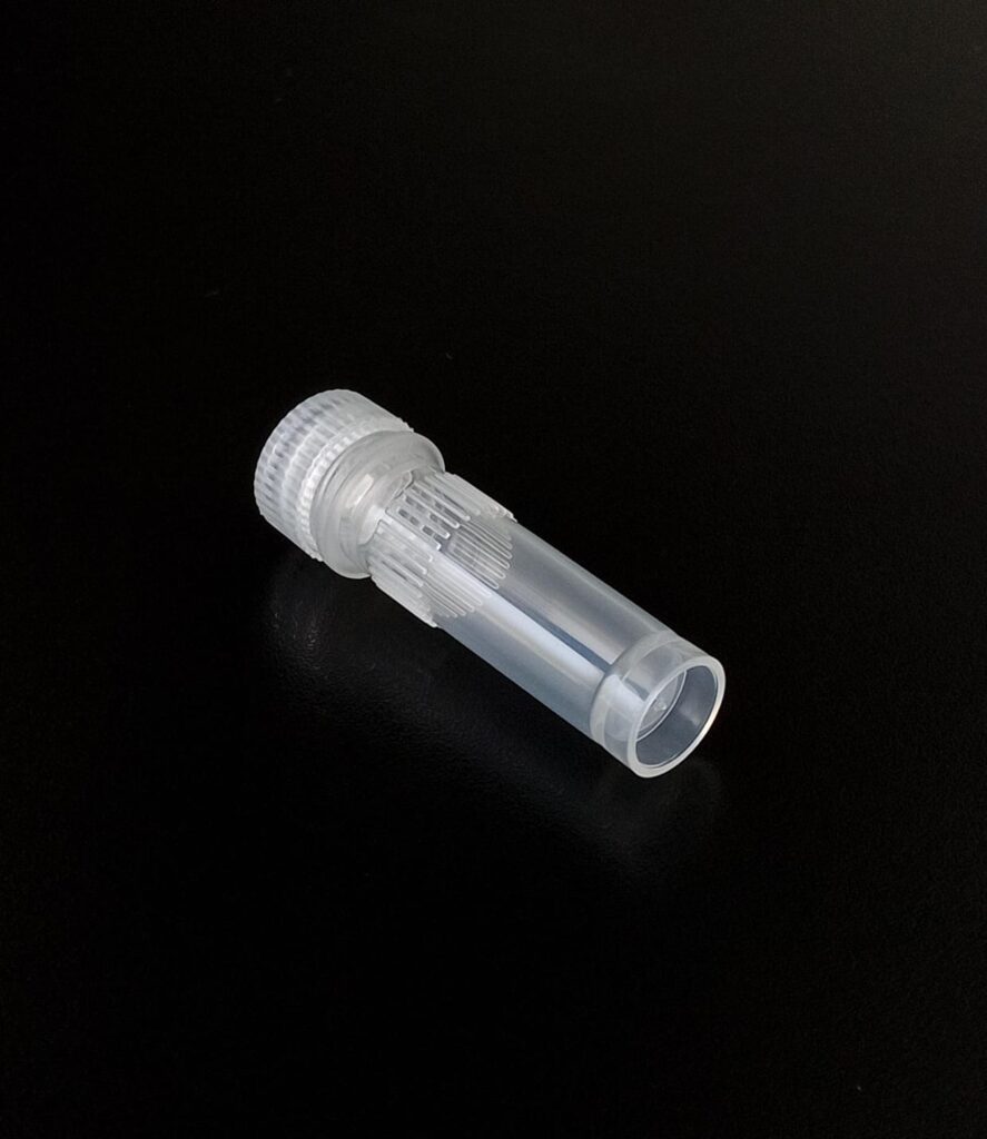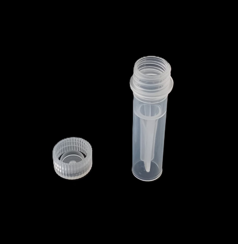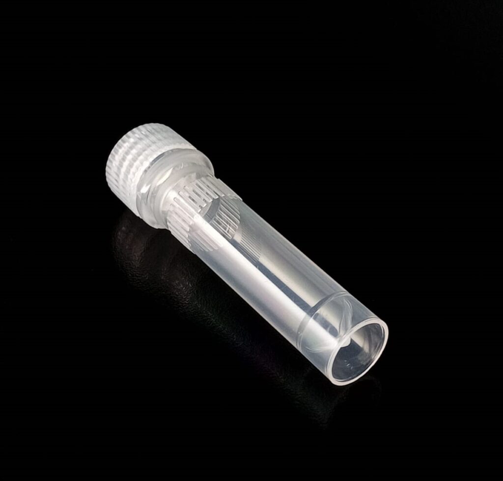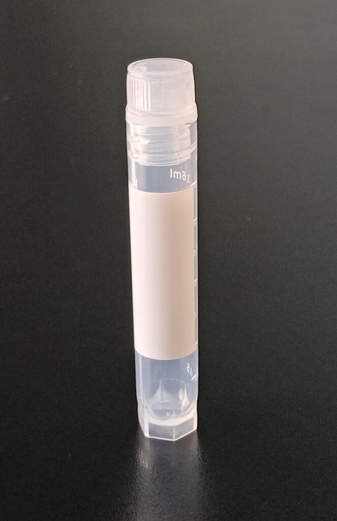 Criovial ROSCA EXTERNA de 2 ml con junta y faldón graduado a 1.8 ml y banda mate para rotulado serigrafiadas. Tubos en polipropileno autoclavable a 121° C resistente a temperaturas hasta -196° C . El tapon en polipropileno incorpora una junta interna de silicona que asegura una hermeticidad total; y admite plaquetas de identificación. PRE Estériles x OE Libres de DNAsa, RNAsa y pirógenos