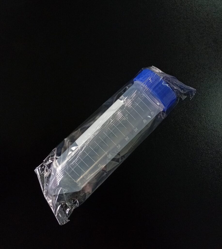 Código: 185TYA01-D CH Caja cerrada: 500 Venta mínima / Presentación: 50 INFORMACIÓN DETALLADA: Tubo 50 ml con faldón, tapa rosca, graduacion serigrafiada y área para rotulado, estéril OE bolsa por unidad. Tubos en polipropileno autoclavable transparente. Tapón en polietileno estriado color azul. Presentados en bolsas con cierre para su mejor almacenamiento. Contenido bolsa: 50 unidades Read More
