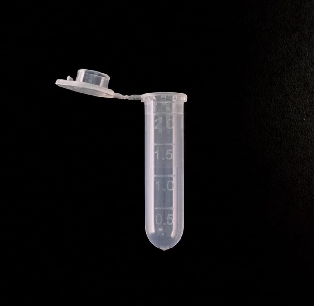 Microtubo de polipropileno autoclavable 2 ml graduado de molde con banda mate fondo conico. Pre ésteriles por OE Libres de DNAsa, RNAsa y pirógenos