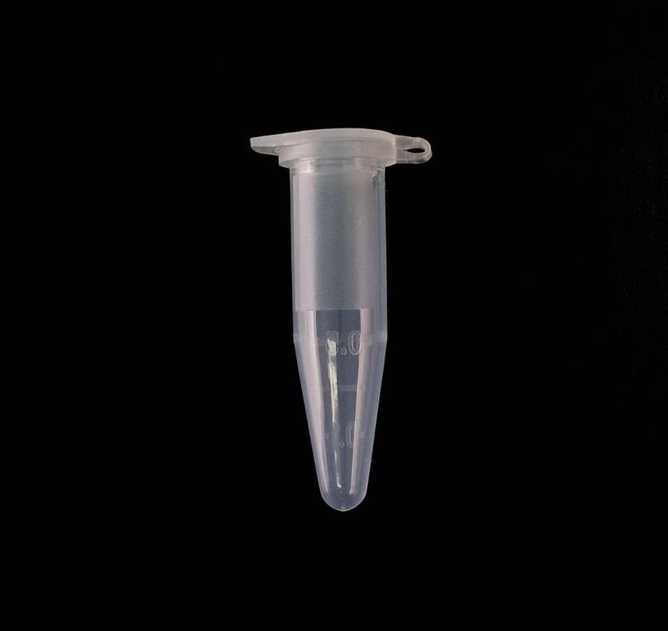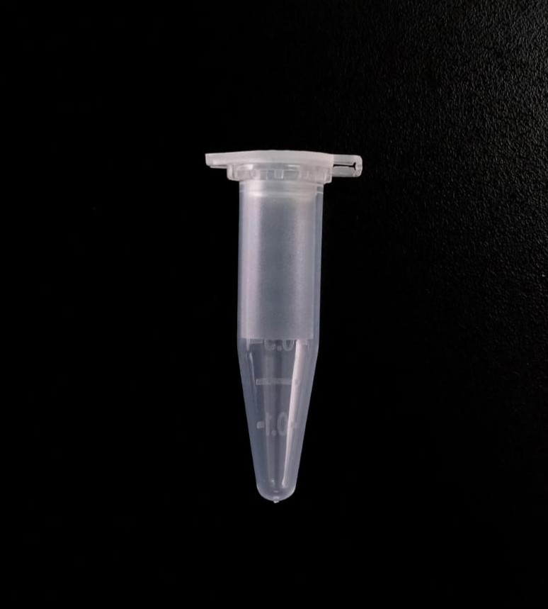 Microtubo de polipropileno autoclavable 1,5 ml baja adhesión graduado de molde con banda mate y tapa plana. Pre ésteriles por OE Libres DNAsa, RNAsa y pirógenos