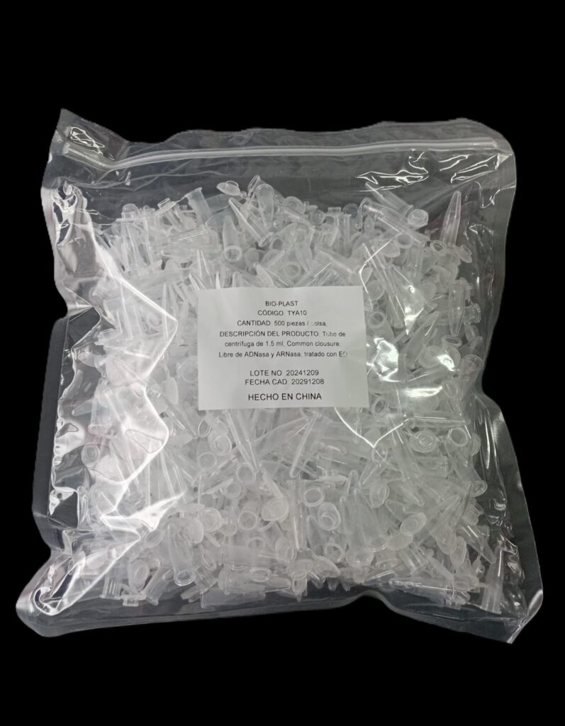 Código: 185TYA10FREE CH Caja cerrada: 5000 Venta mínima / Presentación: 500 INFORMACIÓN DETALLADA: Microtubo de polipropileno autoclavable 1,5 ml baja adhesión graduado de molde con banda mate y tapa plana. Pre ésteriles por OE Libres DNAsa, RNAsa y pirógenos Su graduación grabada de molde garantiza la precisión. La superficie de las tapas junto conla superficie del cuerpo lisa y esmerilada brinda una escritura fácil y legible para laidentificación de muestras. Congelables a -80°C y autoclavables a 121°C.Presentados en bolsas con cierre tipo zip-lock que proporciona un mejor almacenamiento delproducto. Contenido bolsa: 500 unidades Read More