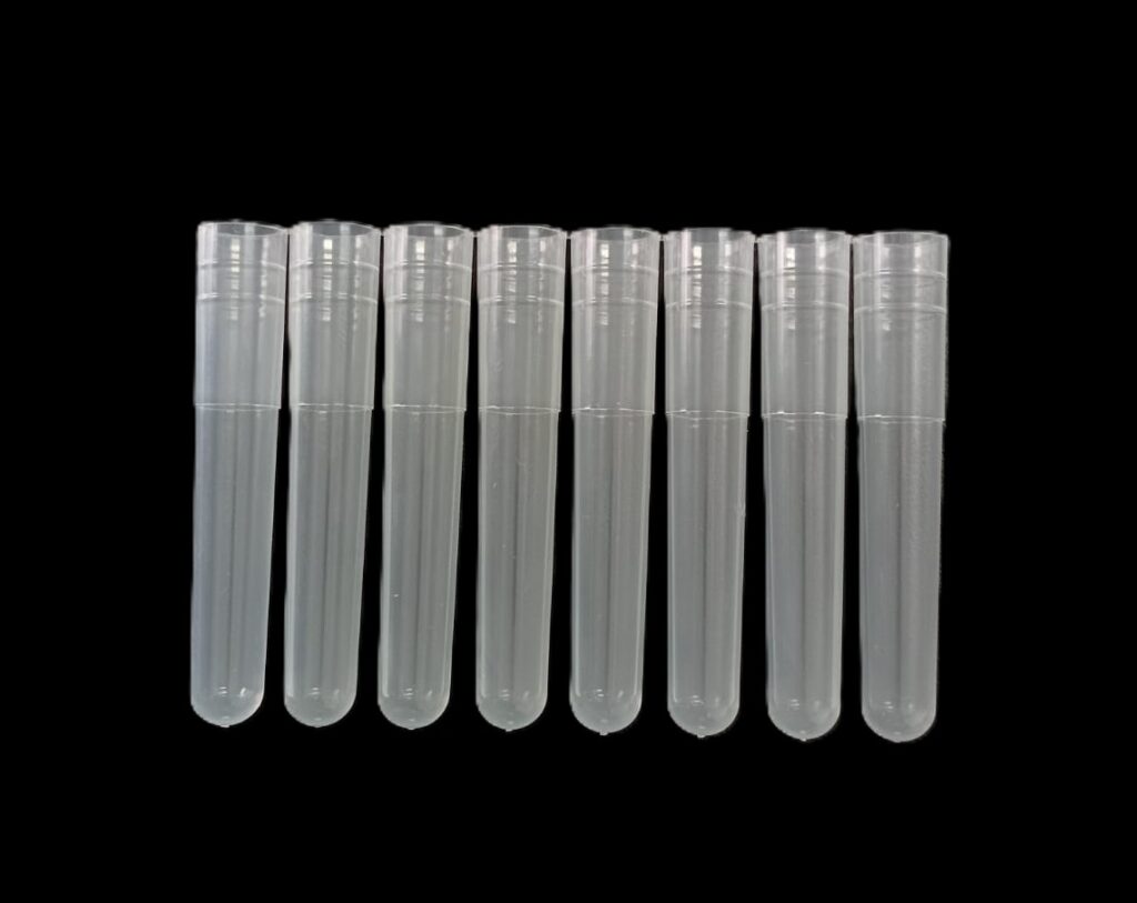 Microtubo PCR de polipropileno autoclavable ultra claro (grado médico) de 0,2 ml, graduado de molde con banda mate y tapa plana
