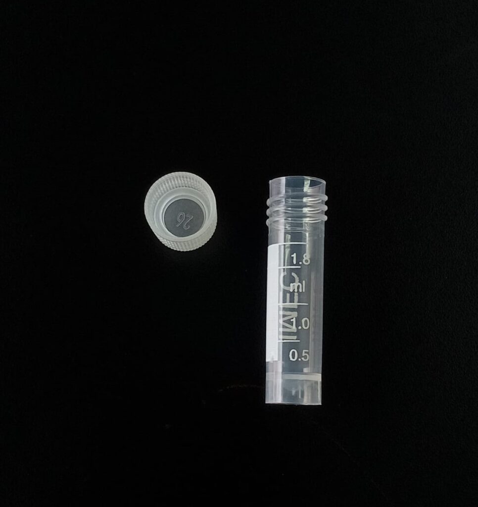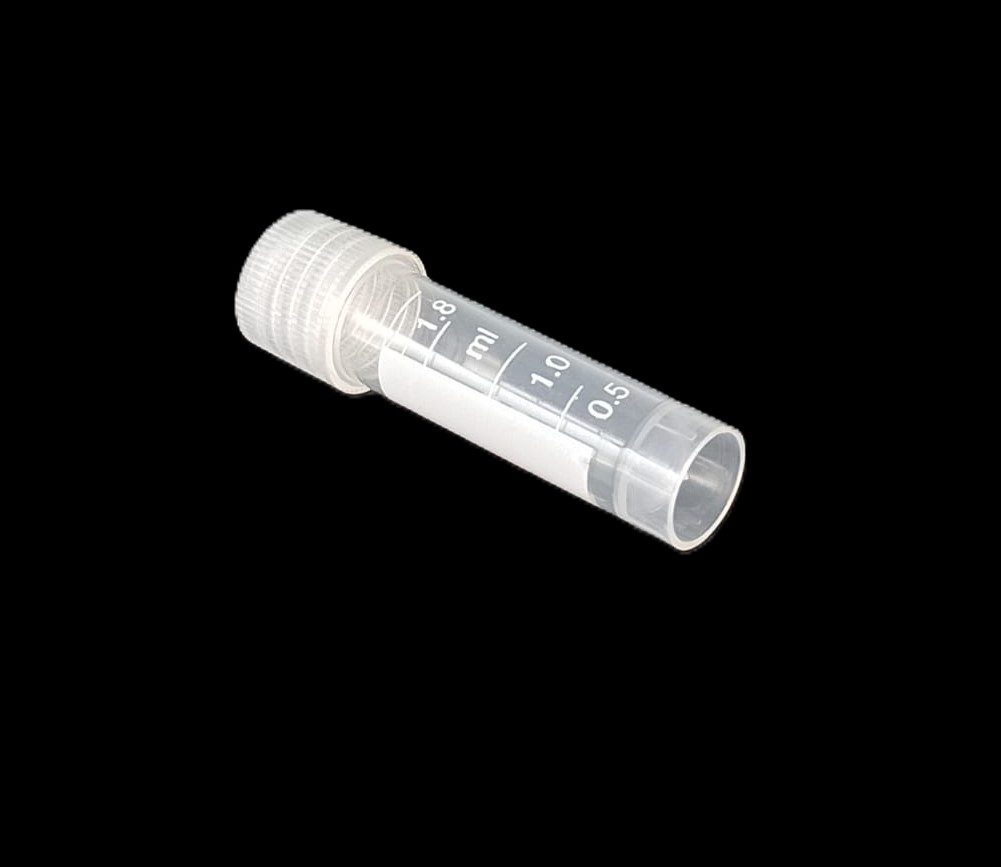 Criovial ROSCA EXTERNA de 2 ml con junta y faldón graduado, libre de DNAsa y RNAsa. graduado a 1.8ml y banda mate para rotulado serigrafiadas. Tubos en polipropileno autoclavable a 121°C resistente a temperaturas hasta –196 ºC (sumergible en nitrógeno líquido solamente en estado gaseoso). El tapón en polipropileno incorpora una junta interna de silicona que asegura una hermeticidad total; y admite plaquetas de identificación. PRE Estériles x OE Libres de DNAsa, RNAsa y pirógenos