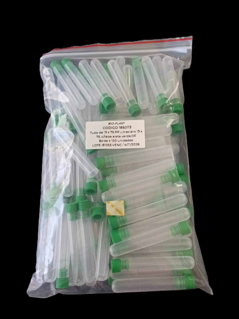 Código: 1850112 IA Caja cerrada: 2000 Venta mínima / Presentación: 500 INFORMACIÓN DETALLADA: Tubo de 13 x 75 de polipropileno ultraclaro con tapa aleta verde Presentados en bolsas con cierre para su mejor almacenamiento. Contenido bolsa: 500 unidades Read More