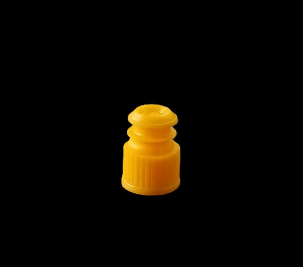 Tapón tubo cultivo diam. 16 mm amarillo. Presentados en bolsas con cierre para su mejor almacenamiento. Contenido bolsa: 50 unidades